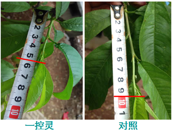 圖1 和對照相比,噴施“一控靈” 新梢短4公分,控梢效果很突出